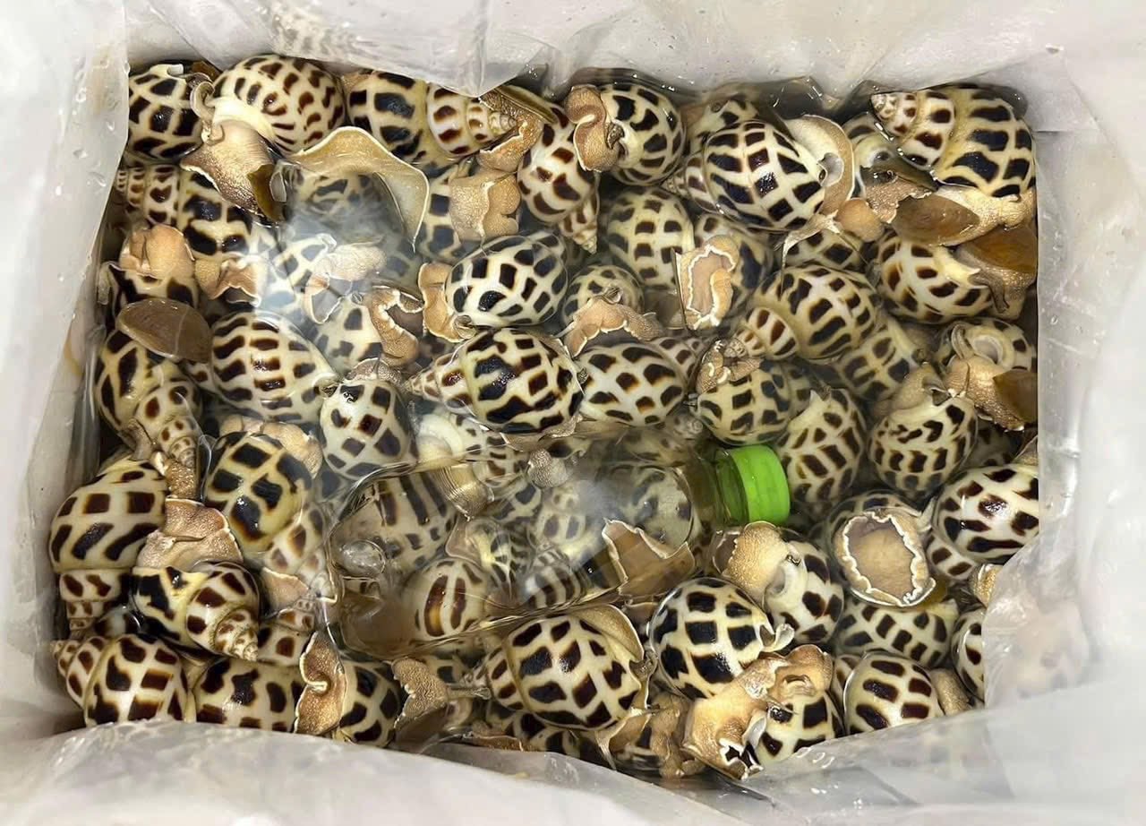 - Đặc điểm hình thái: Vỏ xoắn, có vân nâu – trắng xen kẽ như họa tiết. Miệng vỏ màu trắng ngà, thân mềm, có tua đầu và chân rõ ràng.